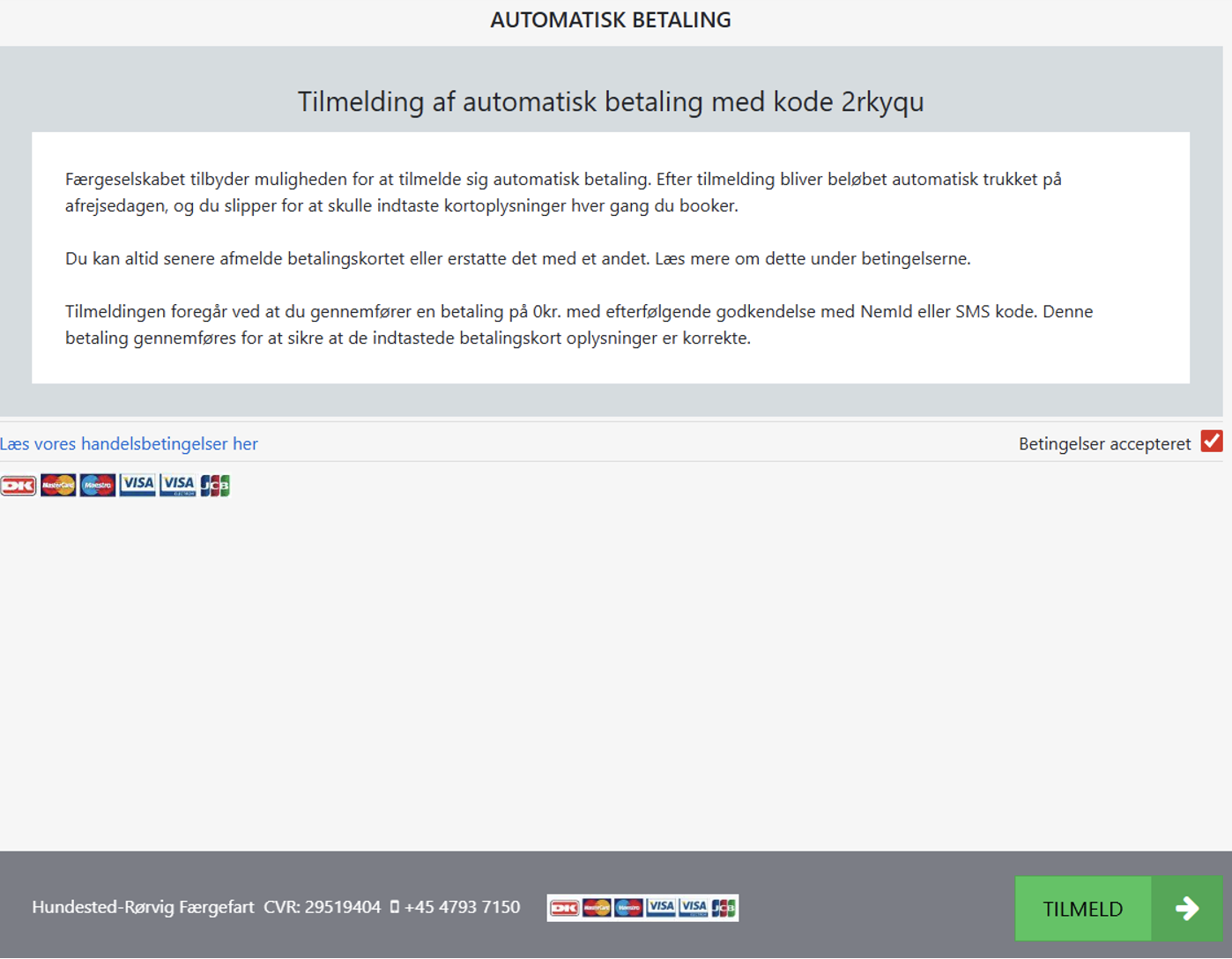 Accepter betingelser og tilmeld