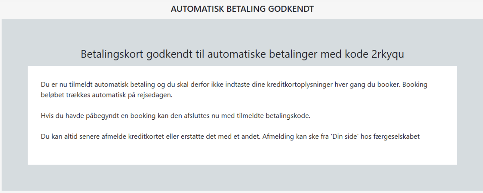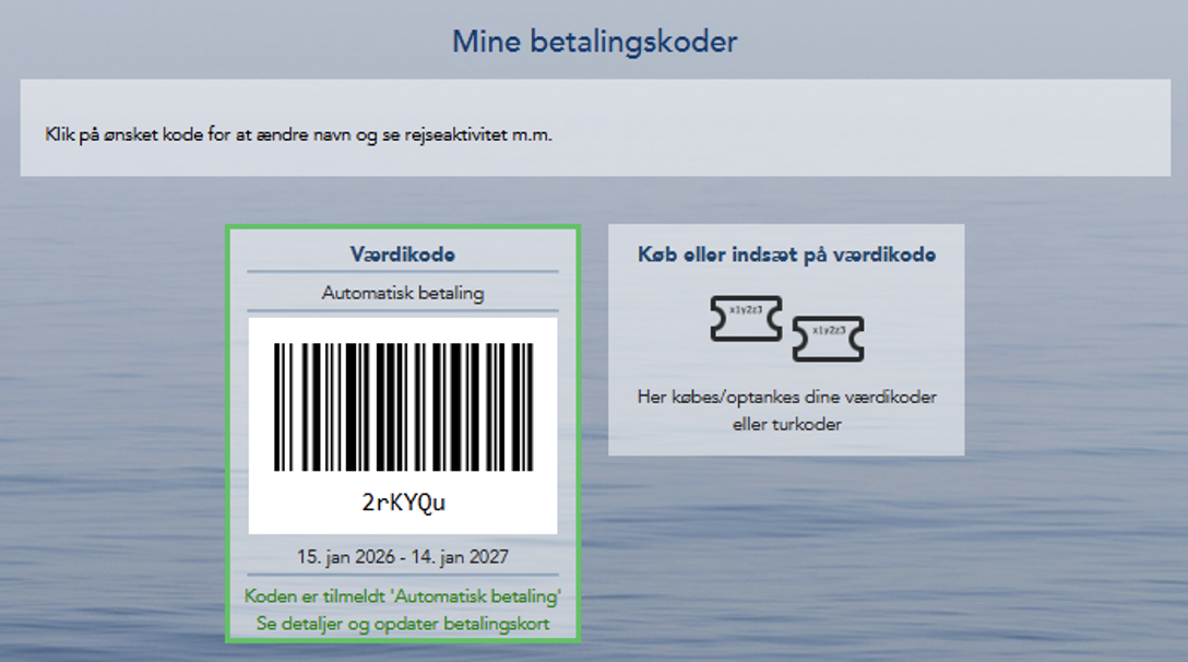 Koden kan altid ses via MIN SIDE, nu som tilknyttet Automatisk betaling
