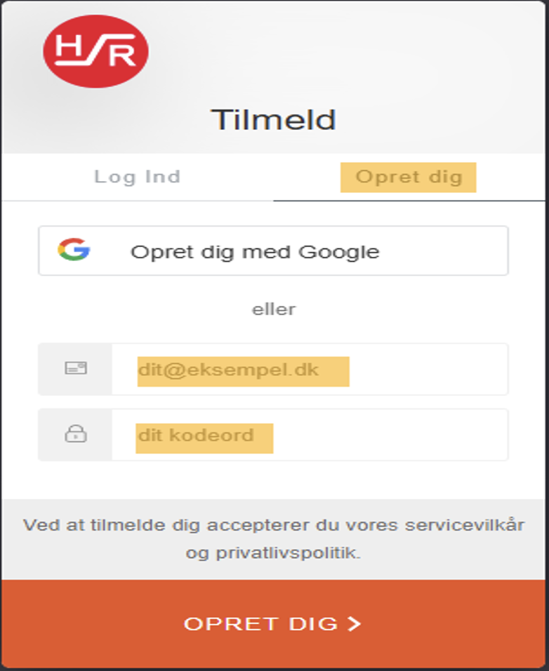 1. Klik på fanen ”Opret dig”, udfyld kriterier og afslut med ”Opret dig”