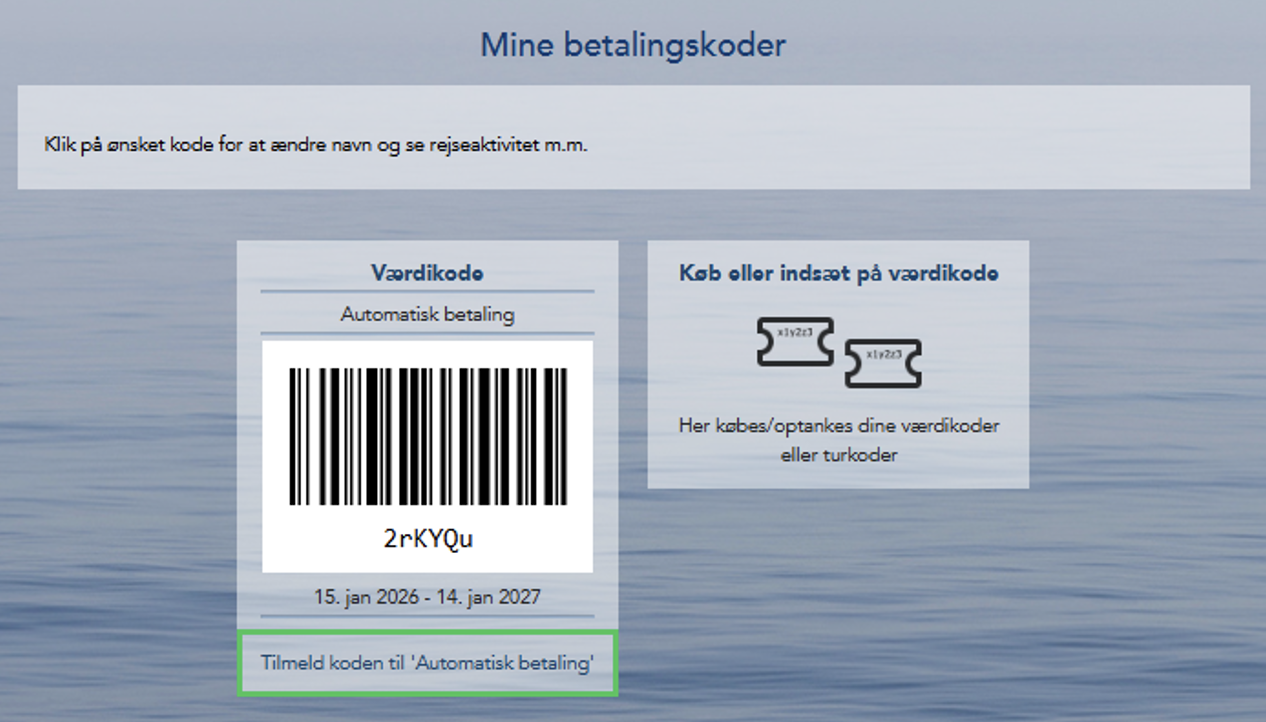 Tilmeld din nye betalingskode til automatisk betaling